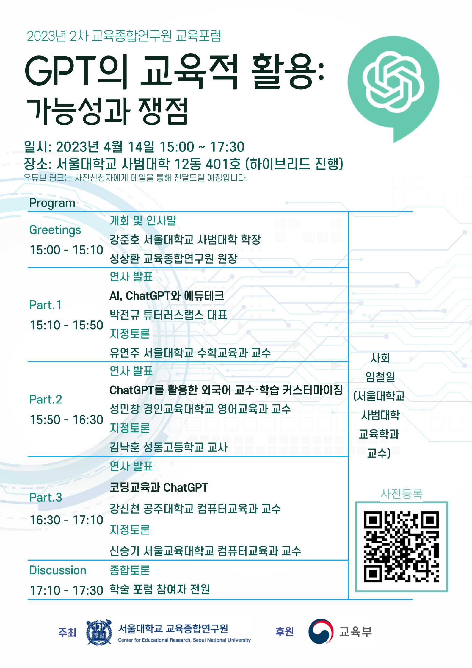 Apr 14, 2023 Seoul National University https://www.snu.ac.kr/snunow/events?md=v&bbsidx=140819 Youtube <link>